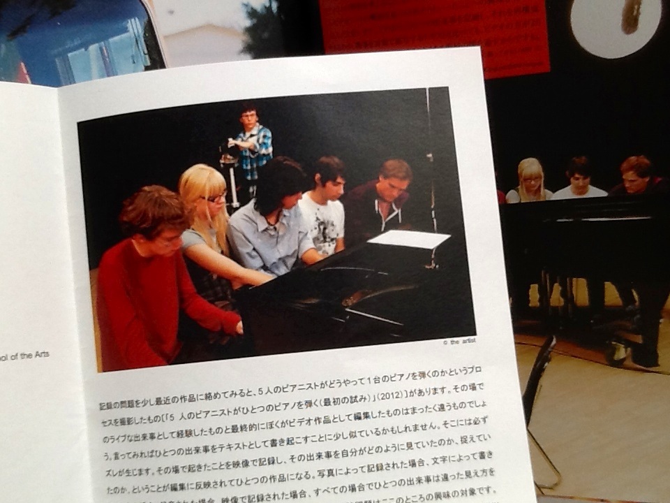 田中功起の映像作品 『1台のピアノを5人のピアニストが弾く(最初の試み)』 の上映会に。