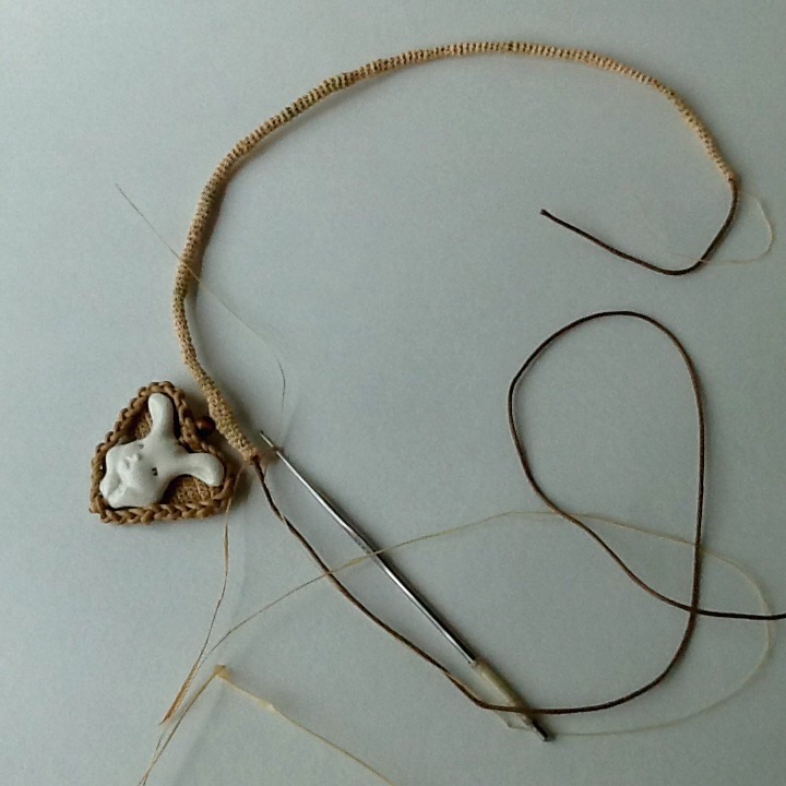 ラフィアの編み物でペンダントのコードを作ってみたいと思って、