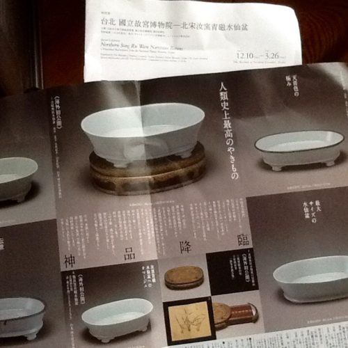 台北の國立故宮博物院から、天青色の汝窯青磁水仙盆が 4点と、汝窯を真似た清時代の青磁水仙盆1点、それに大阪市立東洋陶磁美術館の所蔵品1点を合わせて、青磁水仙盆6点が1室に集まった特別展。大阪で天青色と呼ばれる青磁を同時に見比べることが出来る信じられない様な内容です。さらに特集展 宋磁の美 と中国の宋磁の魅力一杯です。