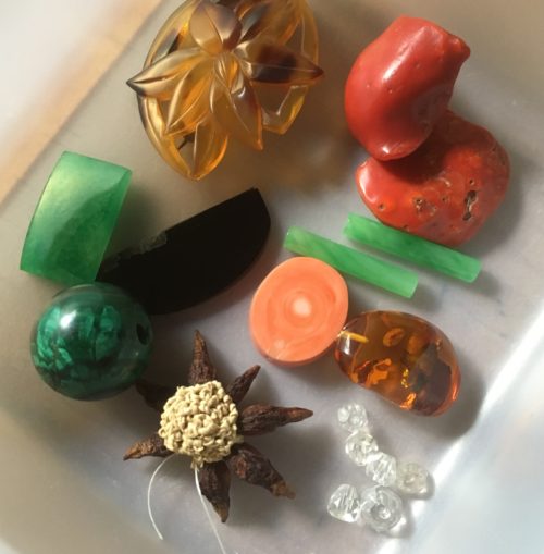 瑪瑙、琥珀、珊瑚、黒石、べっ甲、水晶、ついでに八角。今まで宝飾品として使われていた素材なのです。