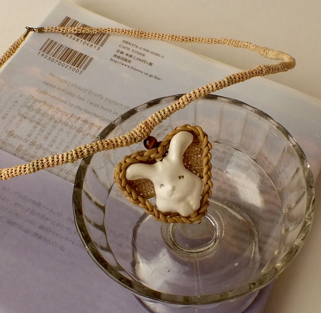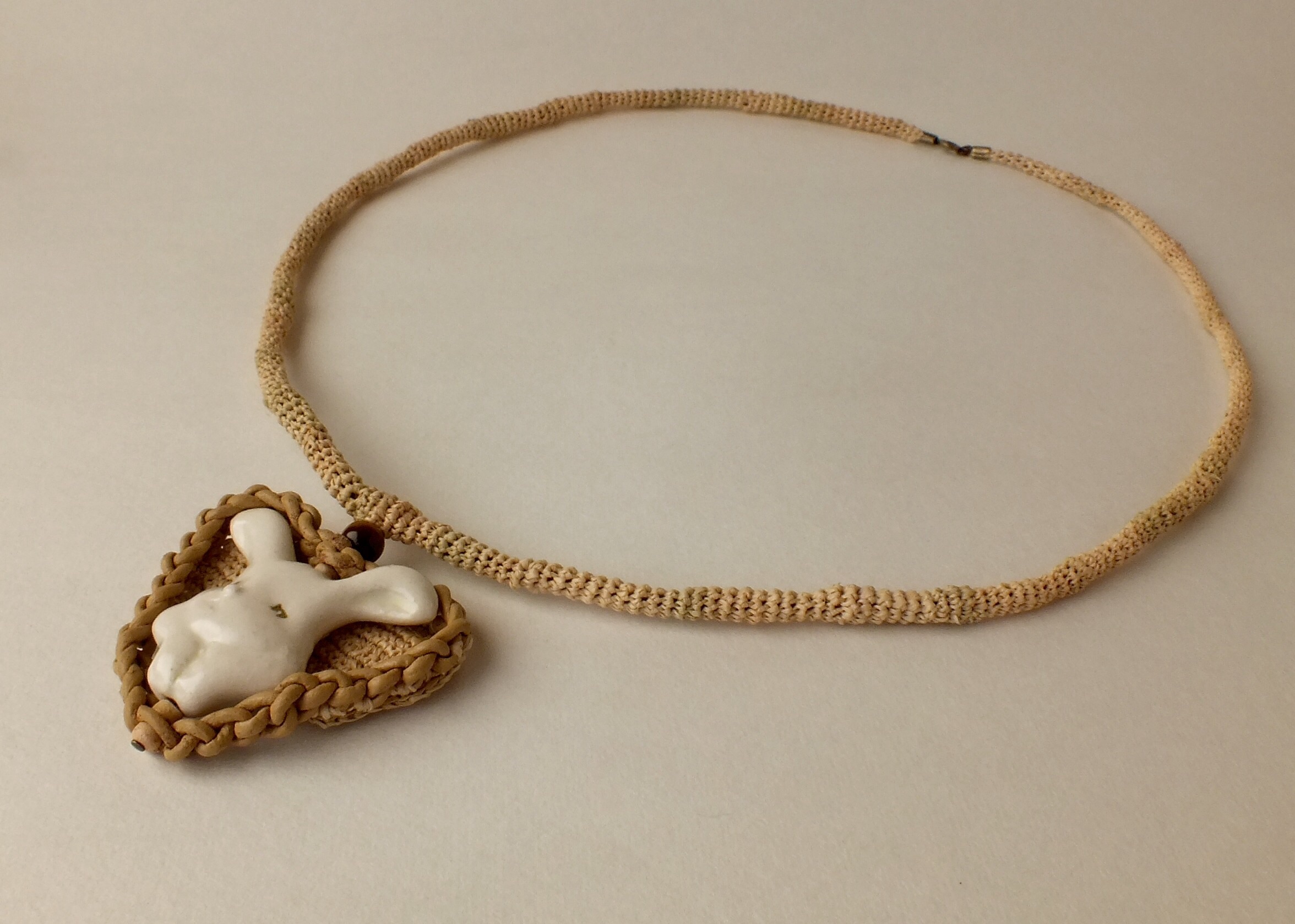 うさぎハートのラフィア編みコードのペンダント